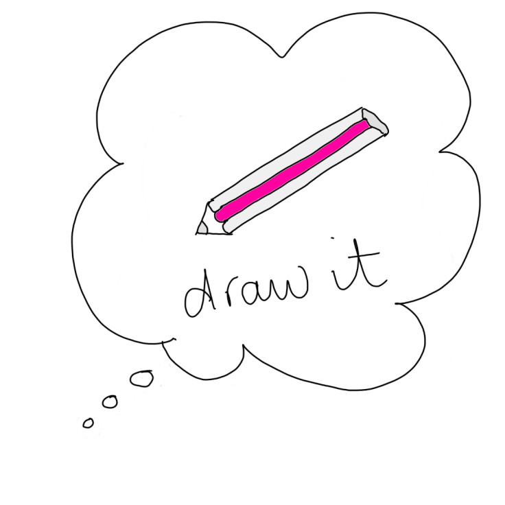 Well, please trust me when I say this is not about your ability to draw. If you can draw a line, circle, a square, a blob, a triangle… you are equipped for the ‘Draw it’ stage of the process.